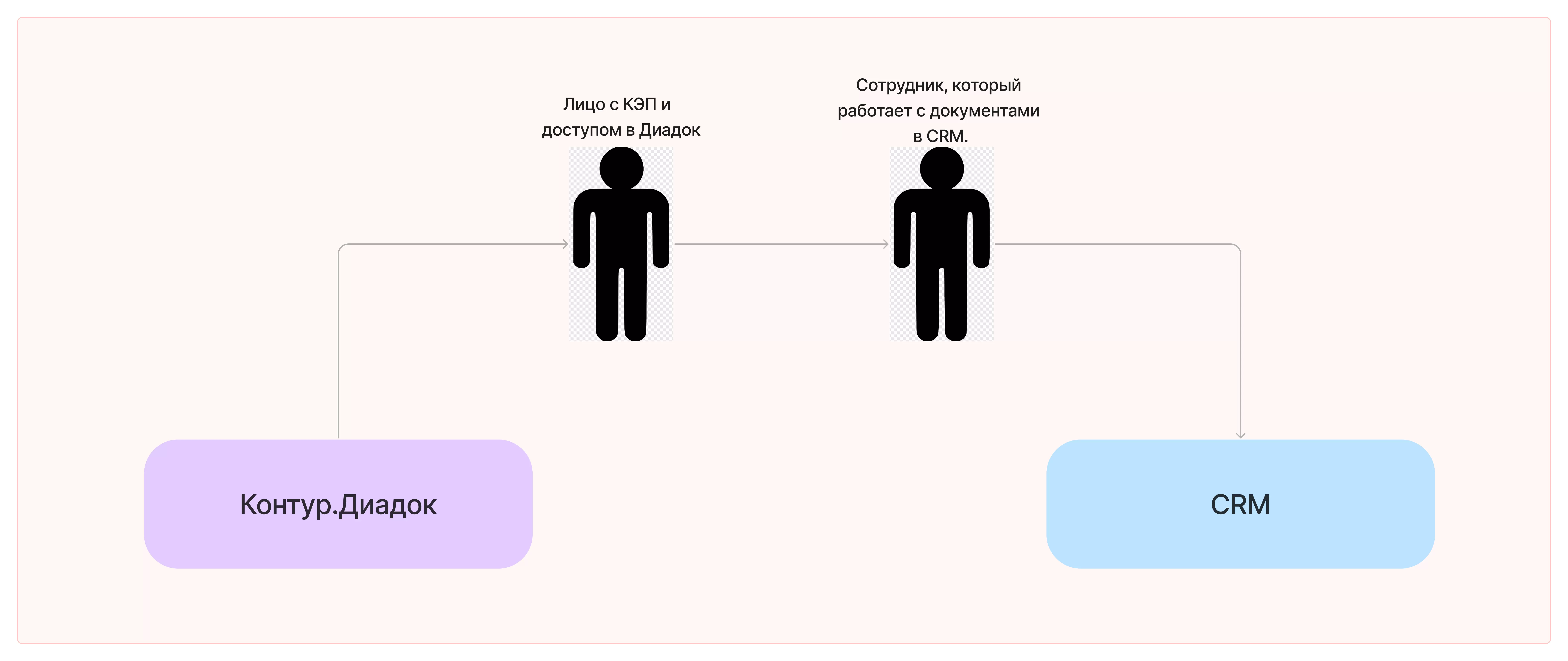 Между первым и вторым шагом есть заминка во времени: надо ждать, когда тот, у кого есть права, зайдет в Диадок и узнает статус документа. Сотрудники работают с закрывающими документами, но доступ в Диадок не имеют и поэтому не знают, какой у них статус: подписаны/согласованы или нет. Это тормозит работу и не даёт двигаться дальше.
