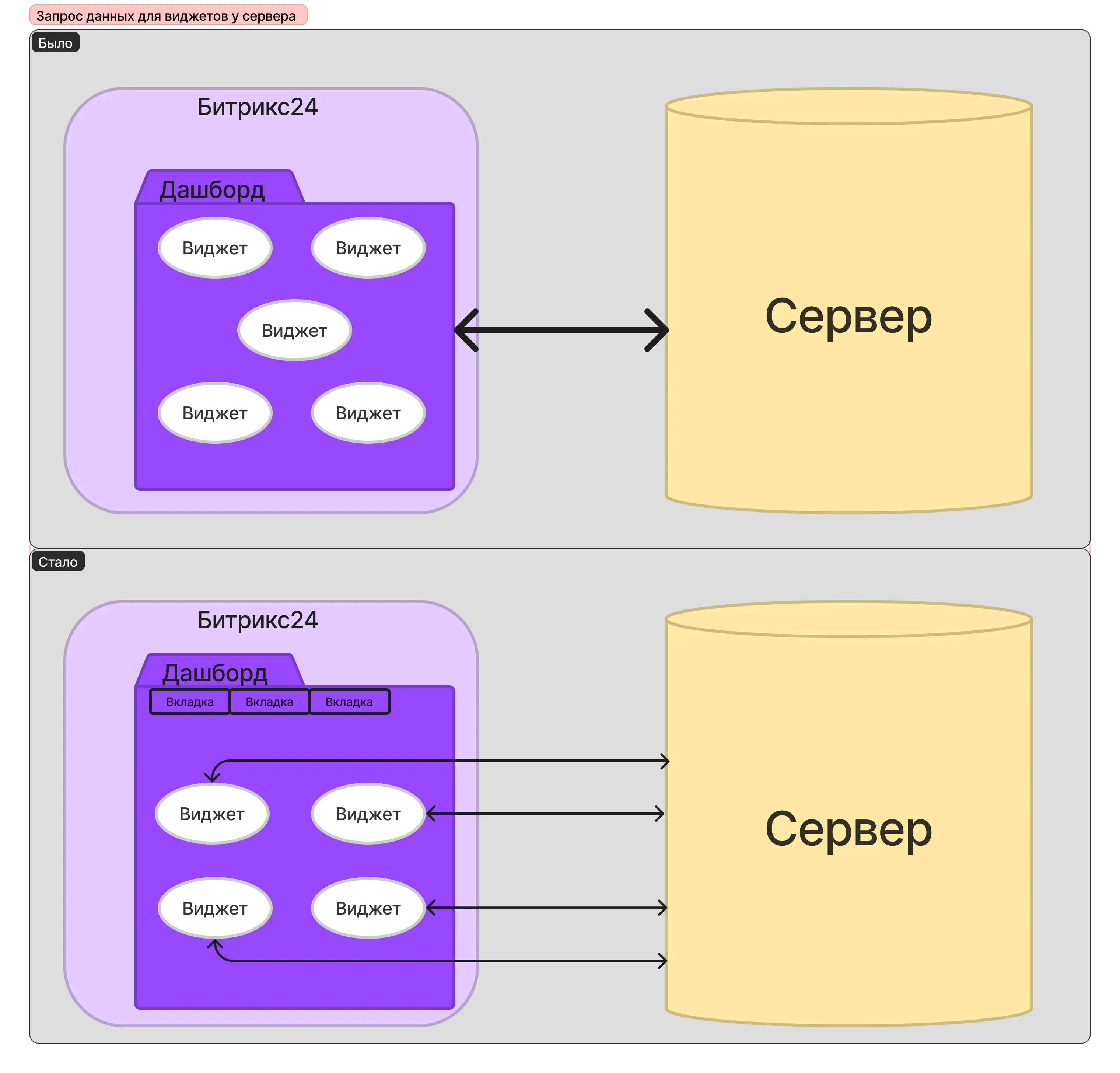 Кажется все просто, но на самом деле сложность — в подтягивании всех данных из сервера и других отчетов. С течением времени, данных на сервере становилось все больше. Поэтому когда виджеты «запрашивали» сведения, информация с сервера долго «подтягивалась», и дашборды долго загружались.