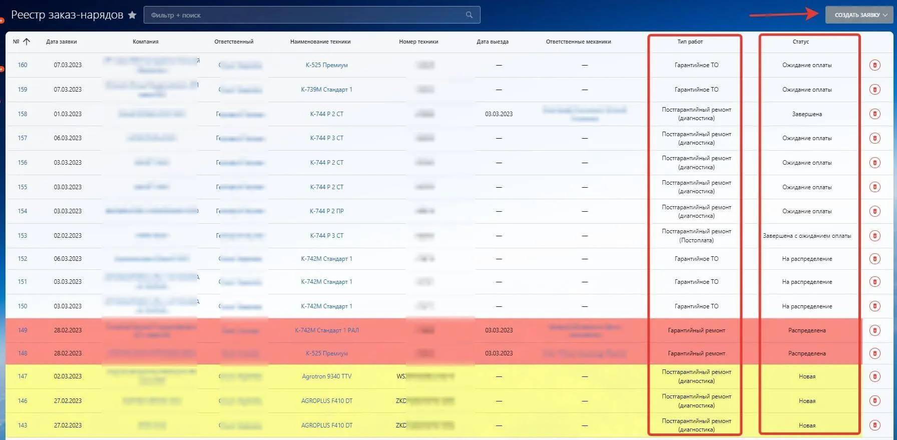 Каждая из заявок окрашивается в определенный цвет, в зависимости от статуса процесса (в работе у инженера, у механика, не в работе и т.д.). Цветовое обозначение помогает сотрудникам быстрее ориентироваться в заявках. Кроме того, сотрудник получает специальное уведомление в системе о выборе его ответственным и необходимости заполнить форму согласования. Такое решение позволяет диспетчеру автоматизировать рутинные процессы и быстрее обрабатывать заявки.