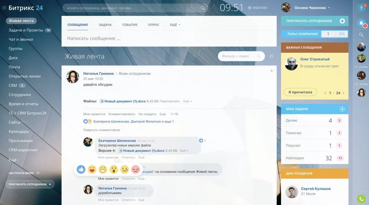 Помогает работать вместе. Полноценный корпоративный портал компании, который объединяет и упрощает коммуникацию внутри вашей компании.