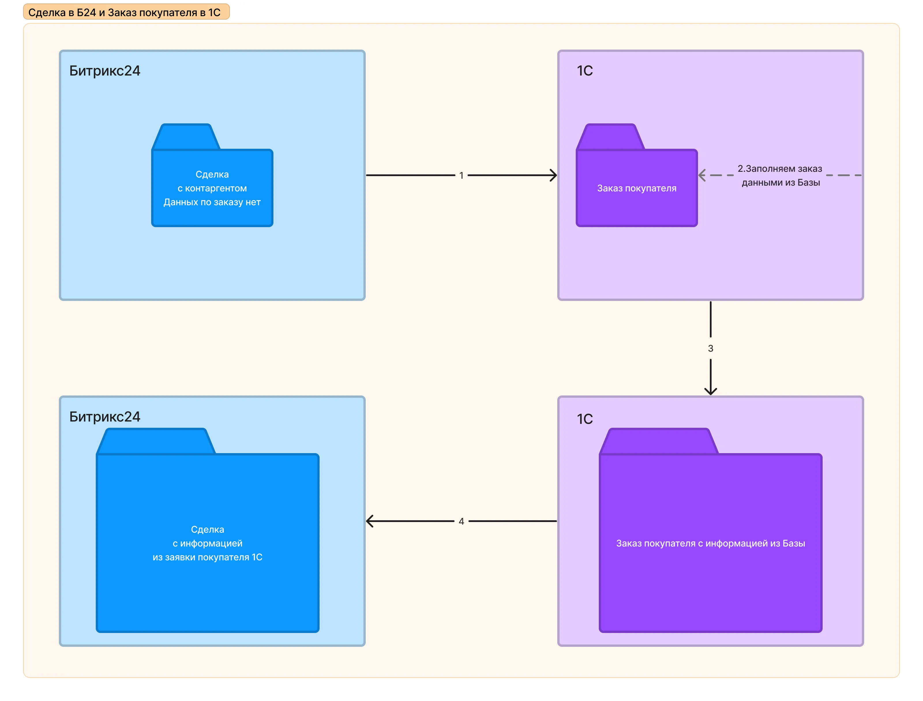 Заказчик пришел к нам с сильно переработанной платформой 1С, которую предстояло интегрировать с Битрикс24. Без интеграции систем, сотрудникам пришлось бы создавать заявку покупателя (1С) и сделку (Битрикс) отдельно друг от друга, то есть дублировать свои действия, в том числе создавать контрагентов. Например, если сделать в 1С заявку с контрагентом, которого нет в Б24, то нужно создать этого контрагента и на корпортале. Только после этого создавать Сделку с ним в Б24. Лишние шаги в алгоритме. Чтобы убрать их, мы загрузили базу клиентов из 1С в Битрикс24 и интегрировали платформу с корпорталом.