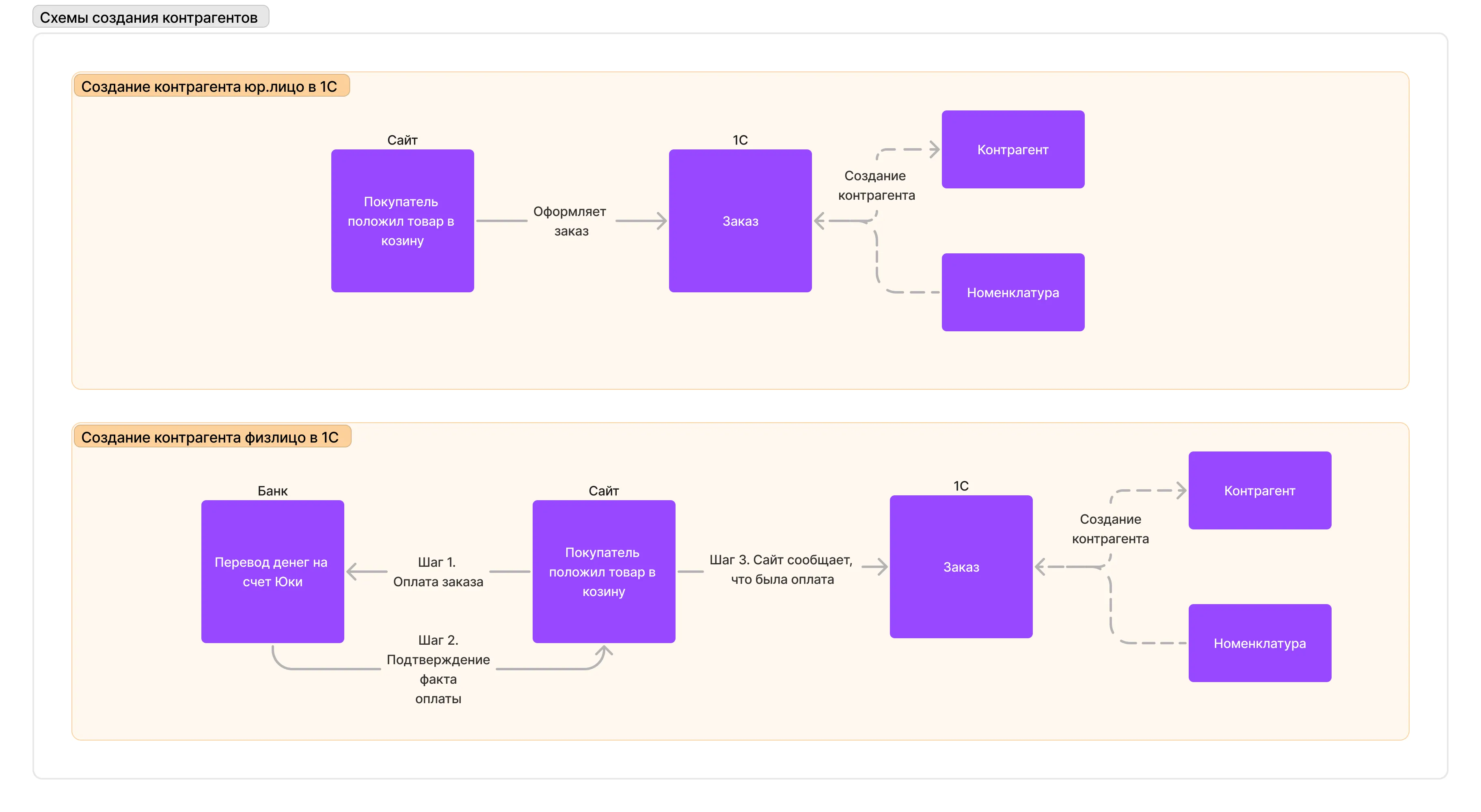 Описанная логика не работает с созданием физлиц. Здесь важно понимать, что физических лиц, которые делают заказы на сайте в разы больше, однако не все доводят заказ до оплаты. Чтобы не «засорять» базу в 1С, мы придумали другой алгоритм: контрагент (физлицо) создается в базе ПОСЛЕ того, как с сайта поступит информация об оплате заказа (об этом мы написали ниже).