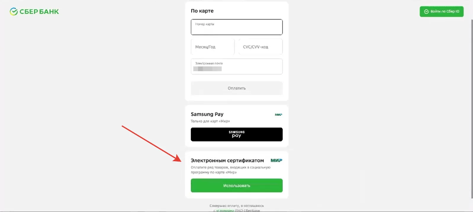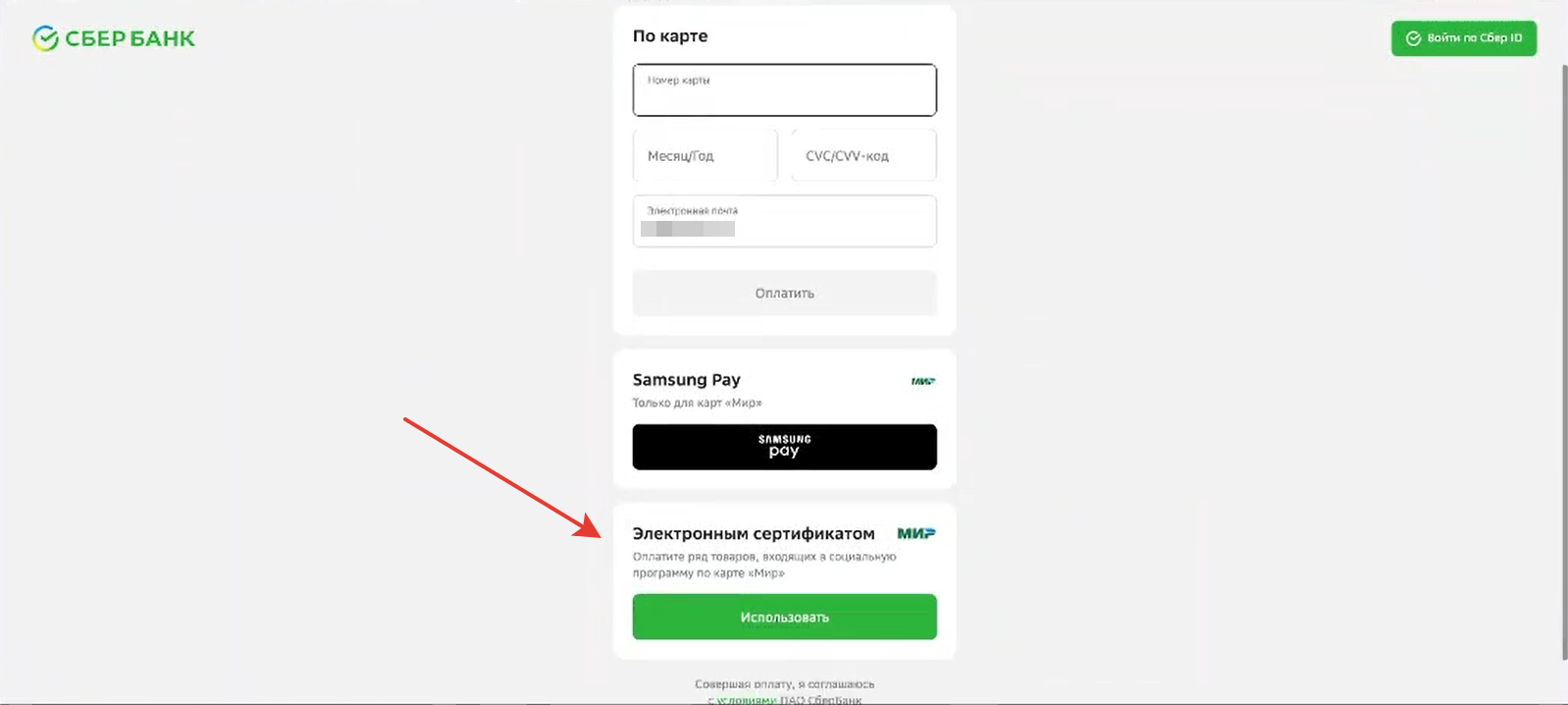 Мы выбрали второй вариант и «допилили» модуль для нужных функций. Теперь на форме оплаты СберБанка есть блок с оплатой сертификатом.