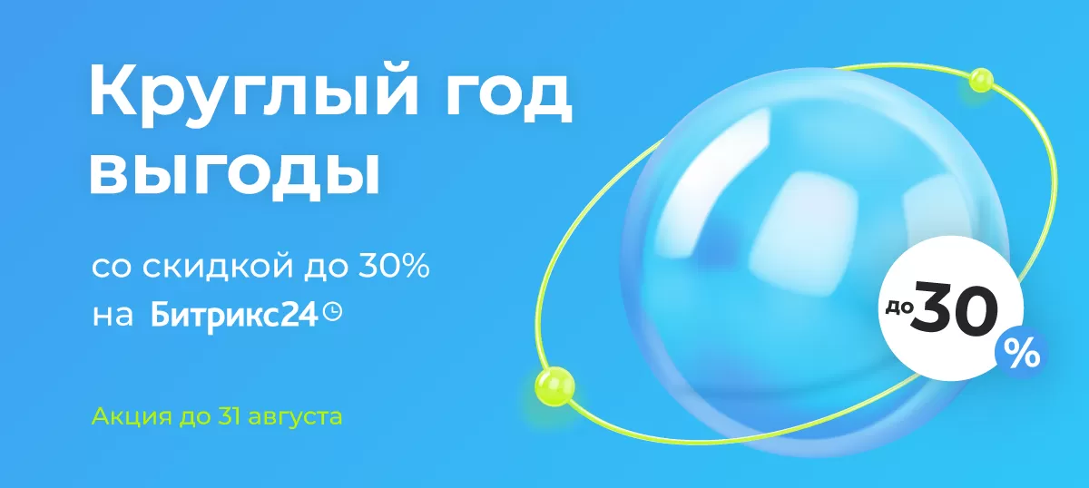30% на год использования всех платных тарифов облачного «Битрикс24» для клиентов, которые