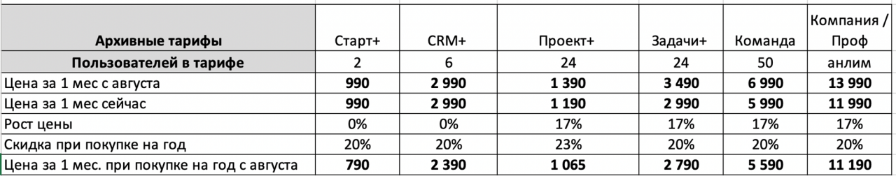 Да, Стоимость его вырастет на 17%, как у большей части тарифов, но безлимит по количеству пользователей одна их веских причин, по которой имеет смысл приобрести этот тариф до конца июля, ведь тарифа с неограниченным количеством пользователей в ближайшей перспективе скорее всего не будет.