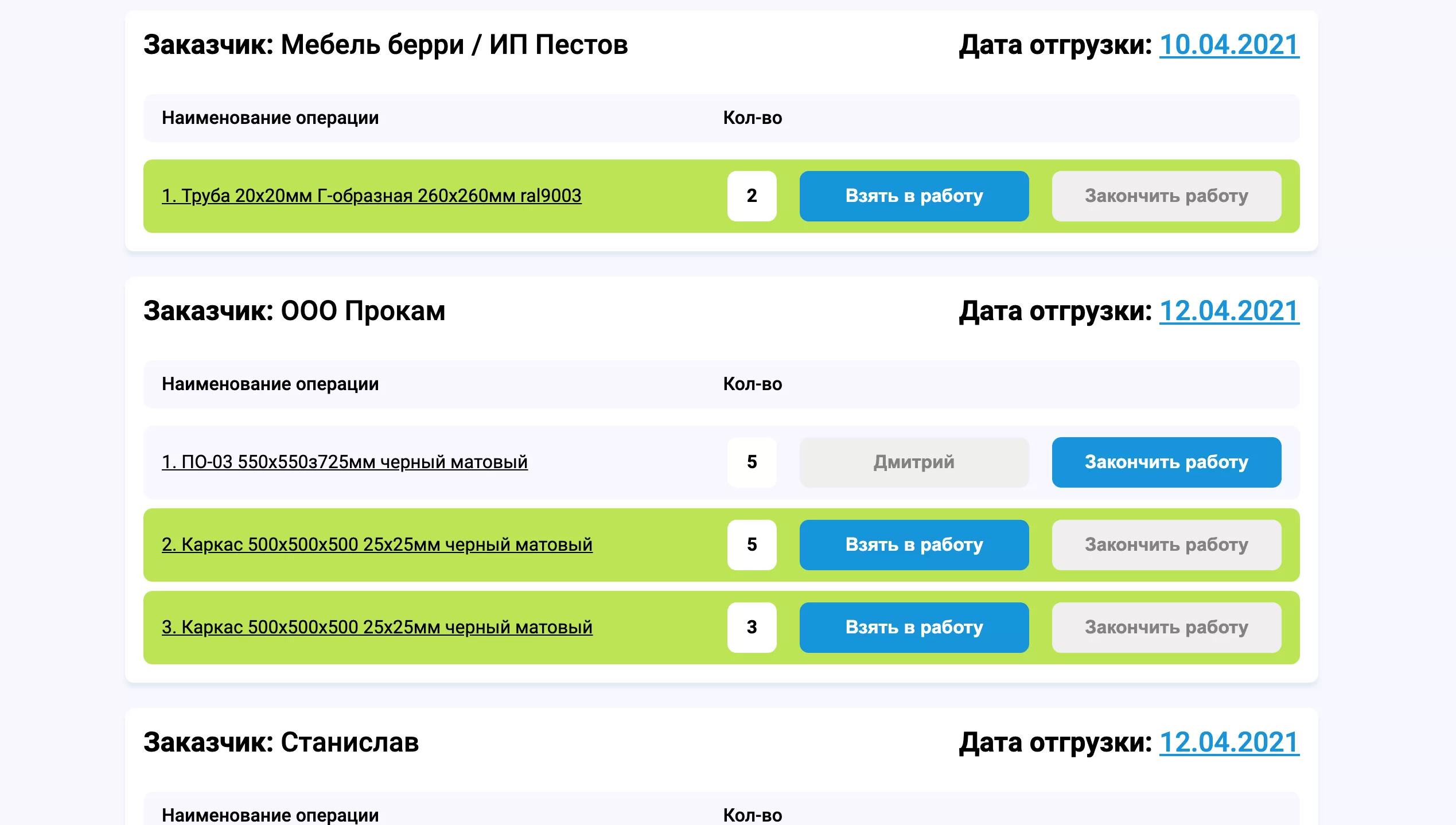 Сложность клиента состояла в том, что сотрудникам производственных подразделений было сложно работать в CRM системе. Необходимо было разработать максимально простой web-сервис для работы с заказами клиентов.