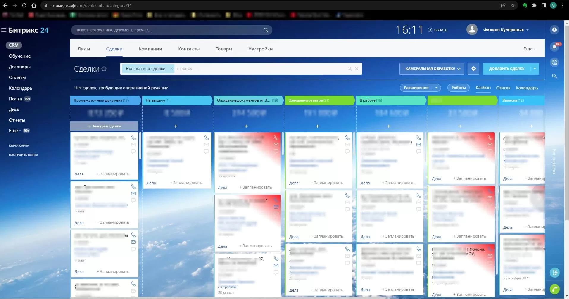 Клиент хотел получить систему корпоративного уровня, которая помогла бы взаимодействию коммерческой службы и Бухгалтерии, оцифровка бизнес процессов ведения клиента, учет и визуальное сопровождение карточек сделок для оперативного контроля сроков по сделкам, сбор данных по сделкам для принятия стратегических решений на основе накопленных данных в системе.