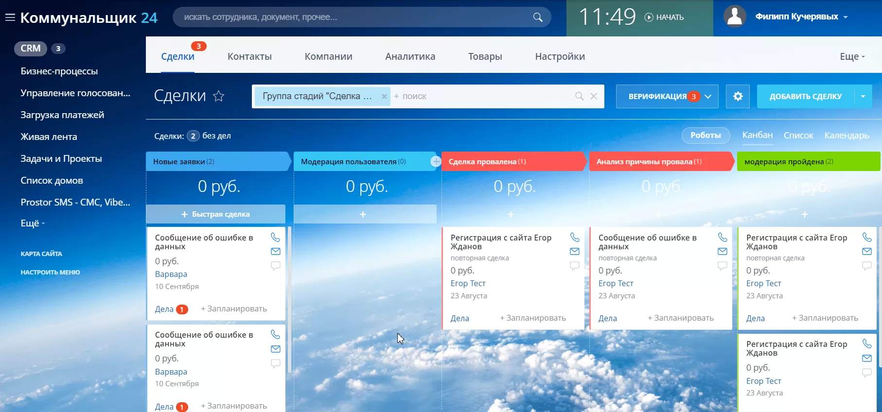 Далее сотрудник компании проверяет достоверность информации и верифицирует пользователя переносом сделки в следующую стадию.