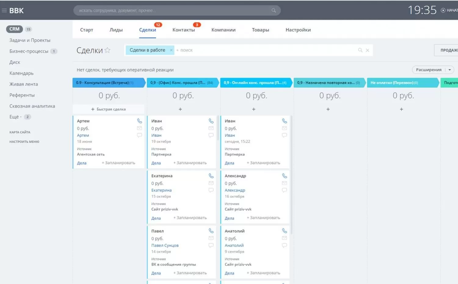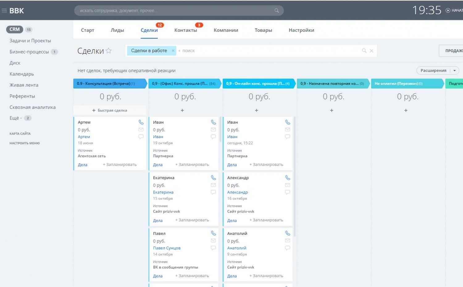 - Процесс работы с агентской сетью - у компании тысячи агентов, которые получают выплату после заключения договора с клиентом. Требовалось администрировать список агентов (референтов) и удобно указывать агента по клиенту так, чтобы все связанные с клиентом элементы срм после привязки были связаны с агентом;