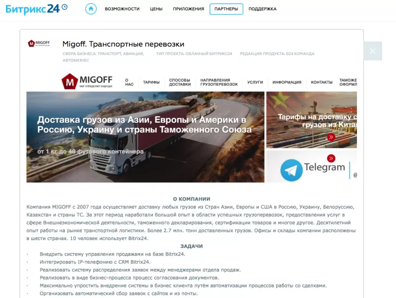 Прямой доступ партнёров к складской и логистической информации: остатки товаров, сроки поставки, статус доставки и другое. Возможность скачать рекламные материалы, узнать о предстоящих скидках на продукты.